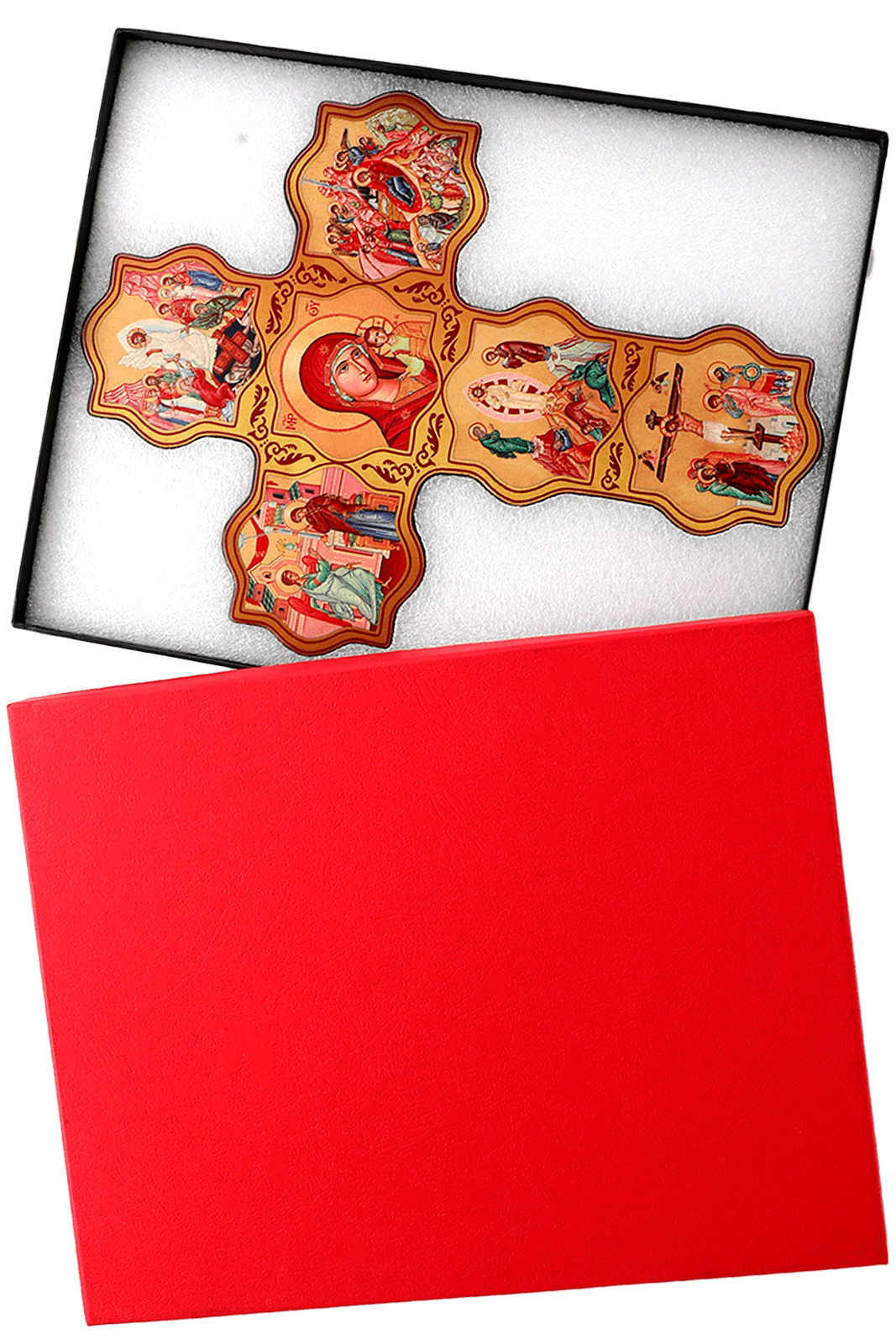 This intricate wooden Orthodox cross is a beautiful addition to any Christian home or church. Hand-crafted with precision and attention to detail, this sculpture is a testament to the rich history and significance of the cross in Christianity. Display it as a symbol of faith and reverence.