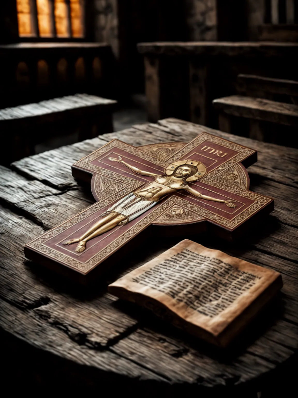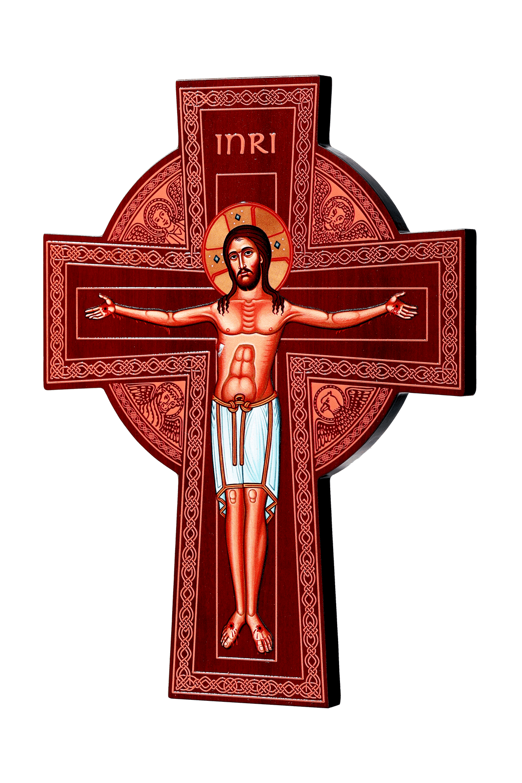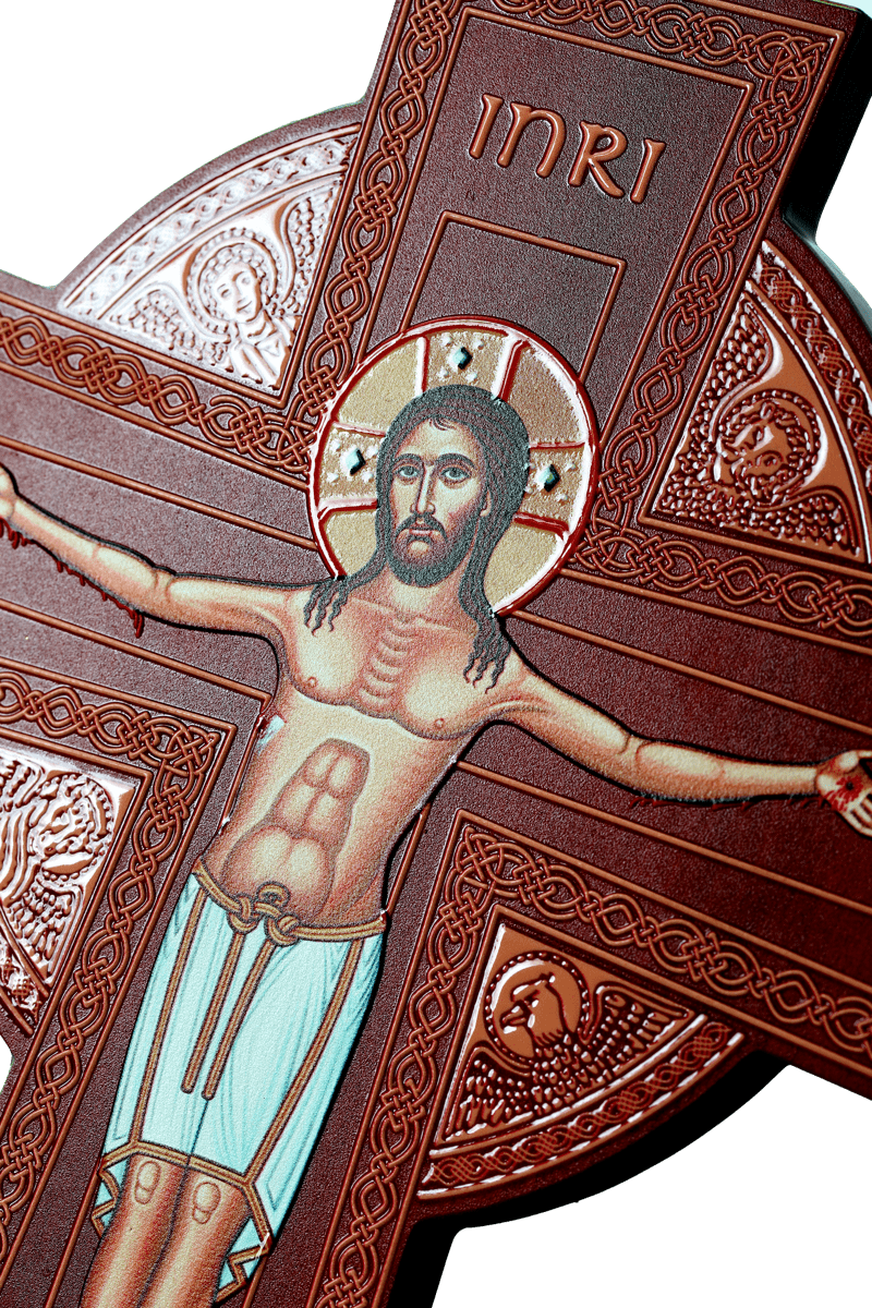 This intricately carved crucifix art is crafted from natural wood, making it a unique and beautiful addition to any religious home or church. Its detailed design showcases expert craftsmanship and adds a touch of serenity to any space. A perfect ornament for those seeking a peaceful and spiritual ambiance.